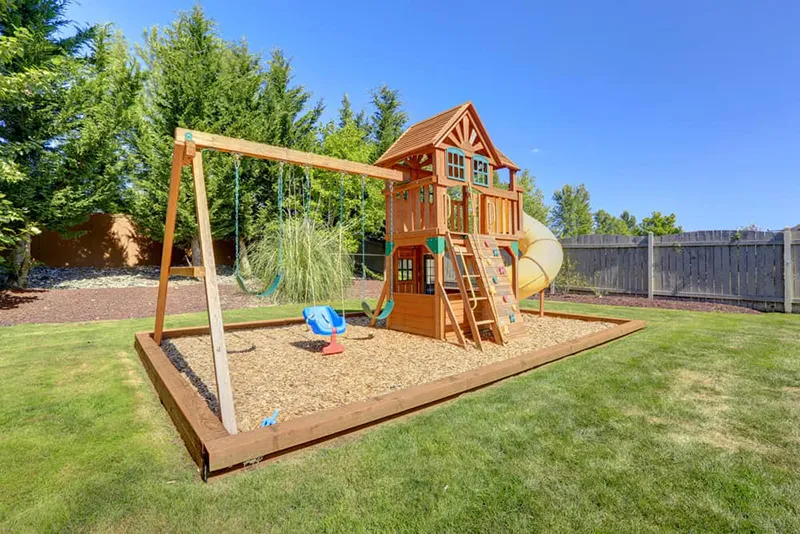 - Дизайн игровых поверхностей с различными текстурами: Например, дорожки из разных материалов (песок, галька, кора) для хождения босиком.