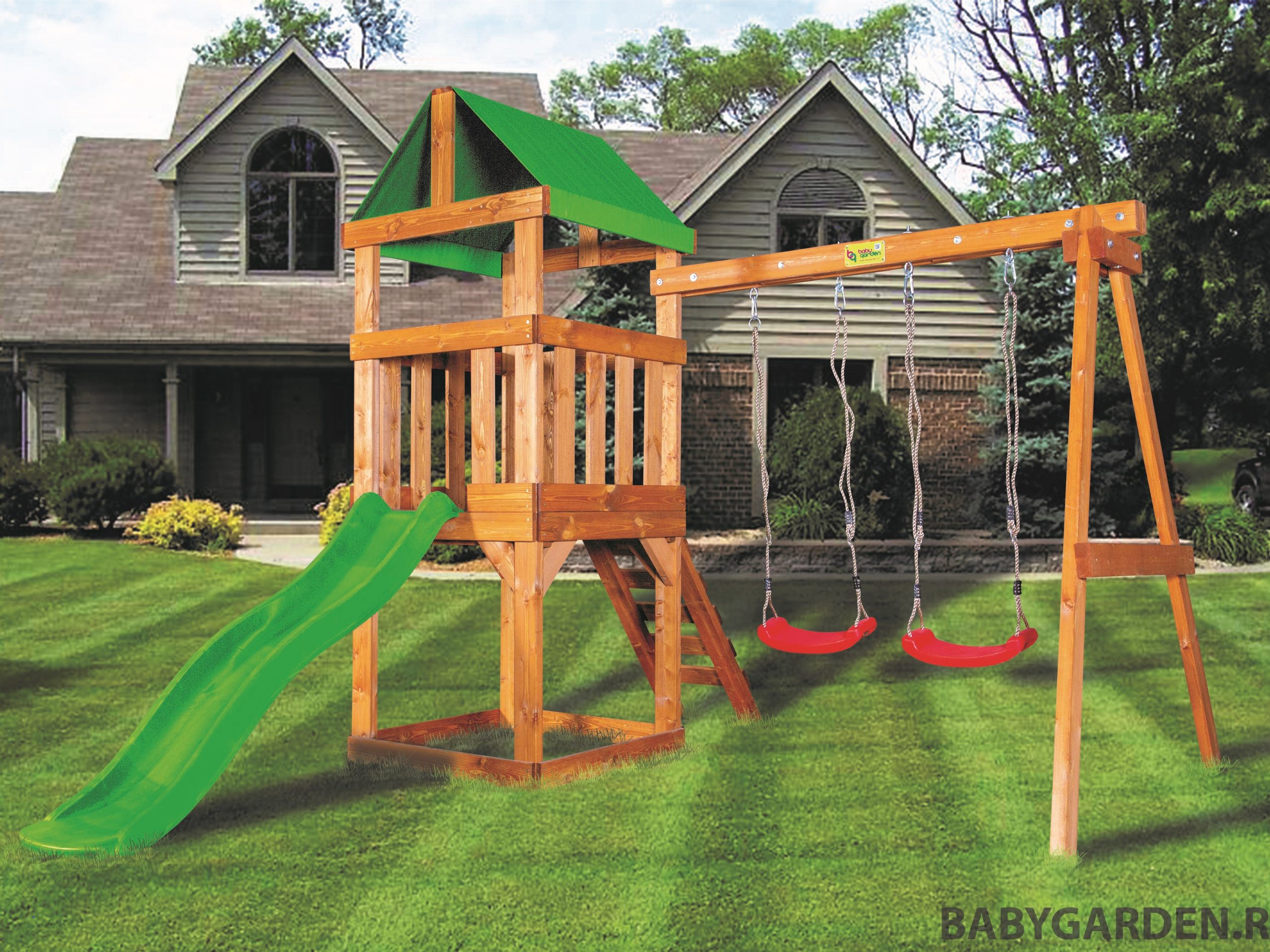 - "Рыцарский замок": Высокие башни, подвесные мосты, стены для лазания, дизайн игровых домиков и крепостей, зоны для ролевых игр․