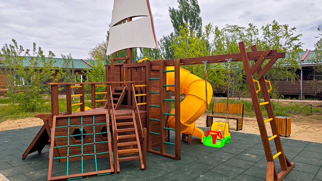 Если мы используем натуральное дерево, то это всегда обработанные и шлифованные элементы без заноз и острых углов. Уход и обработка натурального дерева играют ключевую роль в его долговечности и безопасности. Мы применяем специальные пропитки и лаки, которые защищают дерево от влаги, ультрафиолета и насекомых, а также предотвращают его расщепление. Пластиковые элементы, особенно для горок и спусков, выбираются из высокопрочного, нетоксичного и устойчивого к УФ-излучению пластика, чтобы избежать выцветания и разрушения со временем; Безопасность и материалы для горок (металл или пластик) всегда выбираются исходя из максимальной прочности и минимизации травматизма. Высота игровых платформ и горок также строго регламентируется, чтобы соответствовать возрастным нормам и стандартам безопасности.