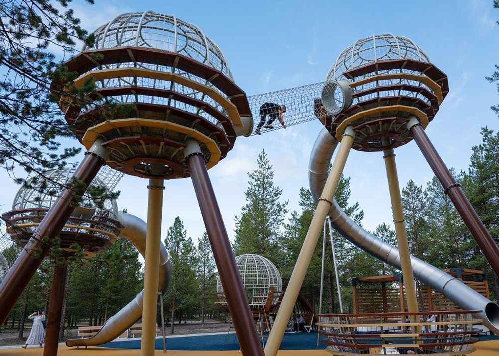 - Канатные дороги и встроенные батуты: Приносят не только восторг, но и развивают смелость, силу и координацию.