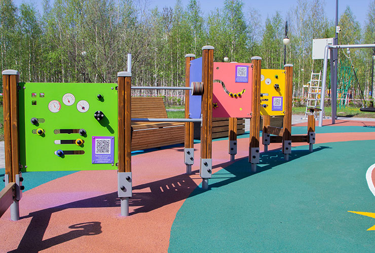 Мы учитываем различные виды ограничений при проектировании. Это включает в себя обеспечение достаточной ширины дорожек для колясок, пандусы вместо лестниц, специальные качели для детей на инвалидных колясках, низко расположенные интерактивные панели и многое другое; Наша цель – устранить барьеры, а не просто добавить несколько адаптированных элементов. Мы хотим, чтобы дети с ОВЗ не чувствовали себя отделенными, а были полноценными участниками игры.