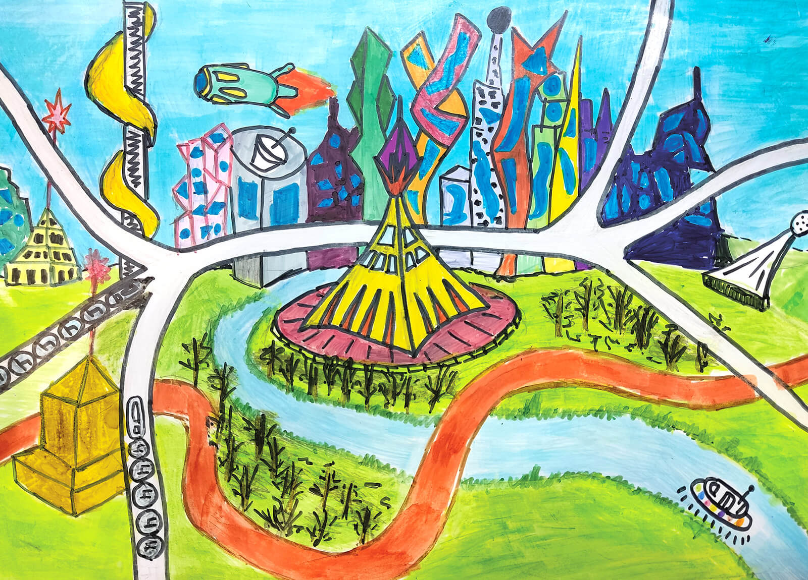 - "Космос": Футуристические формы, металлические конструкции, элементы, имитирующие планеты, ракеты, звезды․ Яркие цвета – синий, серебристый, оранжевый․
