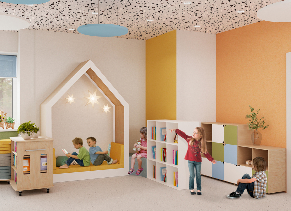 Не менее важным является влияние цвета на психоэмоциональное состояние детей. Мы используем яркие, но не агрессивные цвета, которые стимулируют активность и радость, но в то же время включаем более спокойные оттенки в зонах для отдыха и уединения. Баланс между яркими акцентами и натуральными цветами природы создает гармоничное и комфортное пространство.