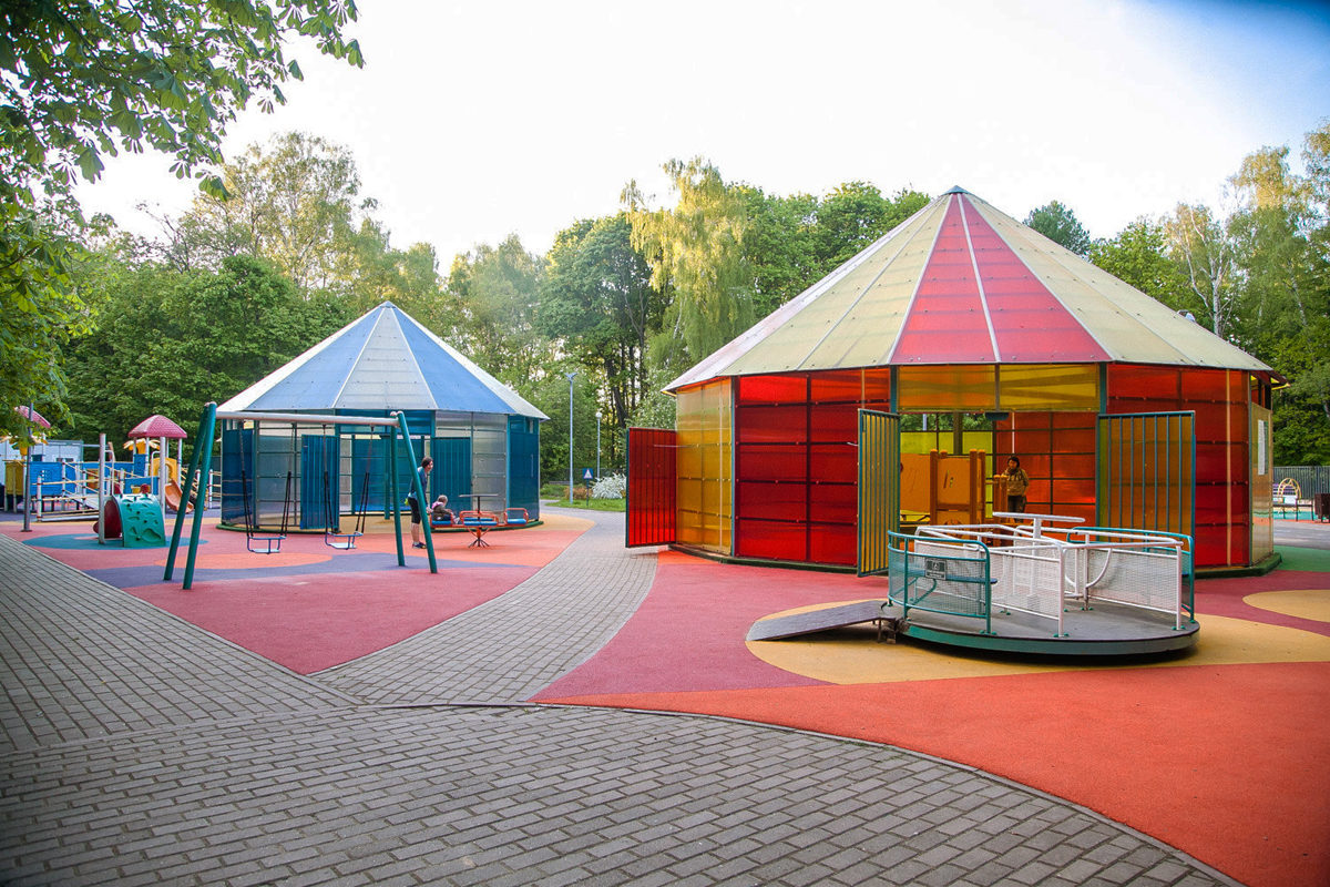 - Доступность: Широкие пандусы, удобные подъезды для колясок, специальные качели для детей с ограниченными возможностями, низкие бортики песочниц.