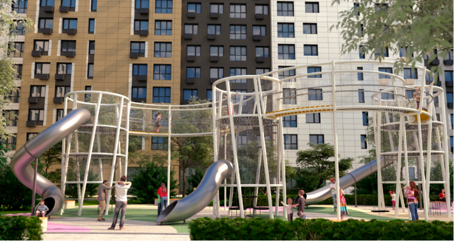При проектировании игровых площадок для многоквартирных домов, мы также учитываем интересы всех жителей:
